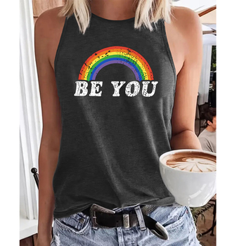 프라이드 셔츠 여성 레인보우 러브 비 유 레터 프린트 민소매 탱크 탑 LGBT 평등 티셔츠